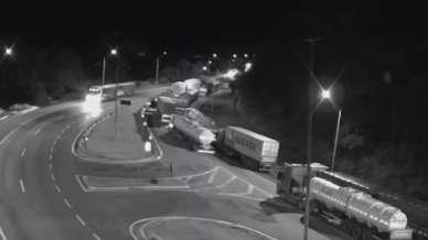 Ainda conforme a PRF, um caminhão estava carregado com milho e acabou tombando na pista. O outro caminhão transportava dois contêineres com madeira.