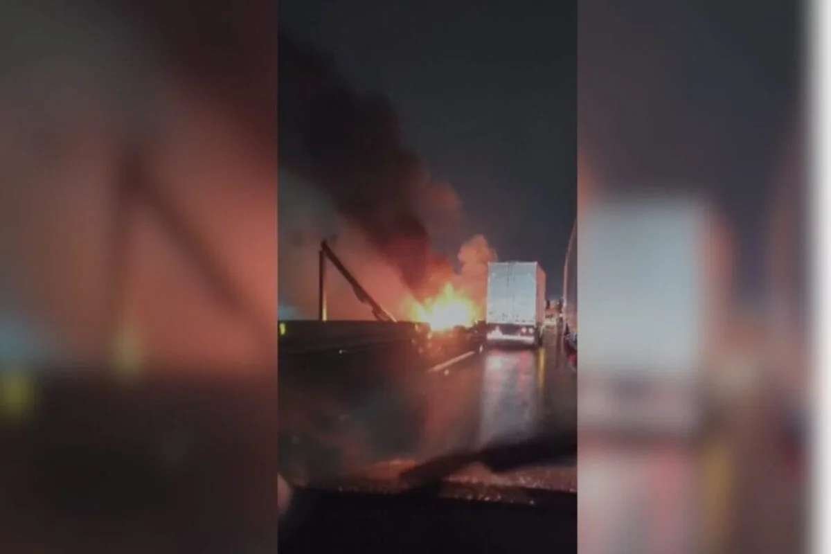 Um caminhão carregado com botijões de gás vazios perdeu o controle, tombou e pegou fogo após colidir contra uma estrutura de radar, na BR-101, em Joinville, no norte de Santa Catarina, na madrugada desta sexta-feira (3/10). O acidente, envolvendo três caminhões no total, deixou a rodovia totalmente interditada em ambos os sentidos. Uma pessoa ficou ferida e foi levada para o hospital. Não há previsão de liberação da rodovia.