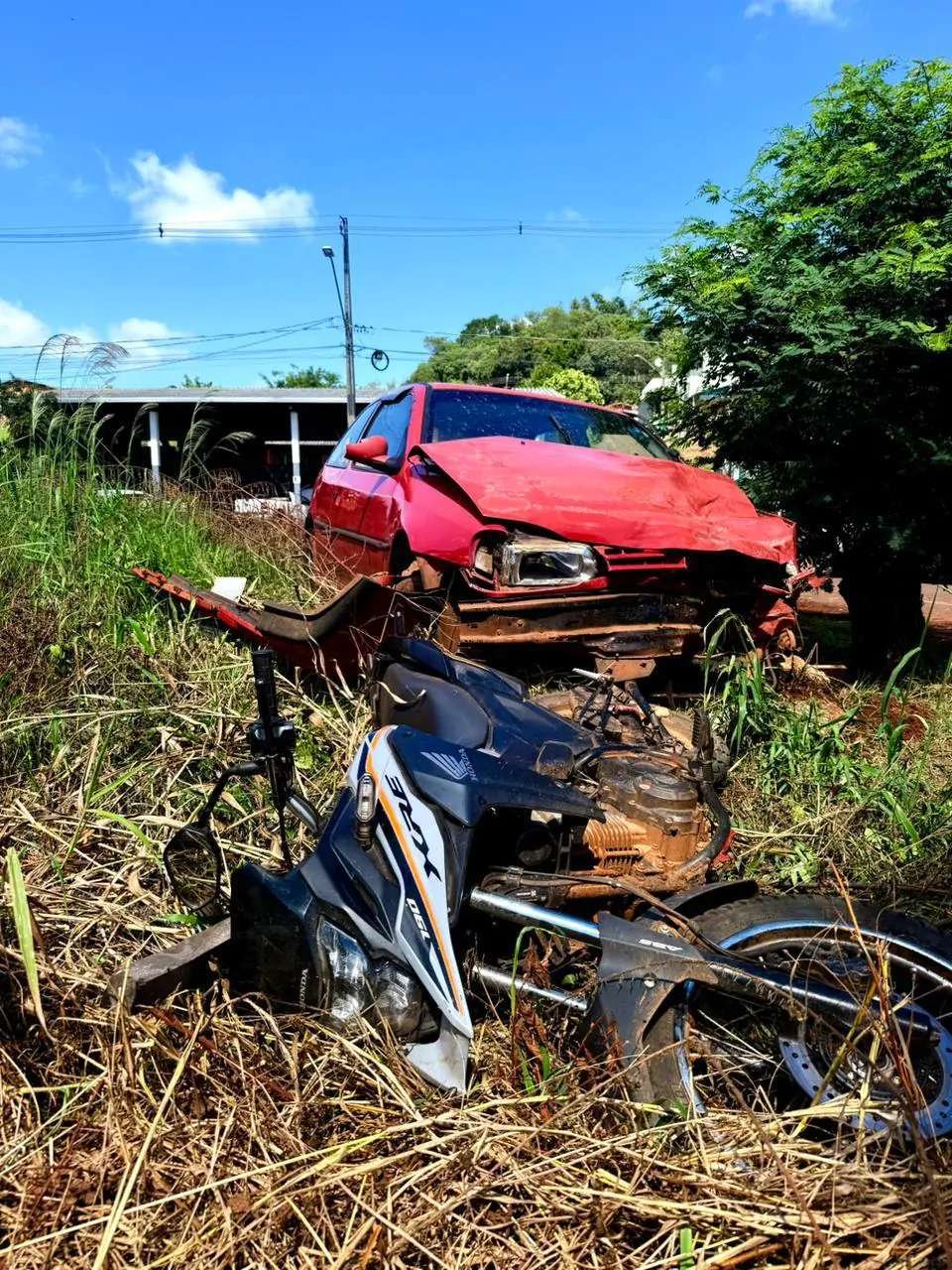 Um grave acidente de trânsito foi registrado em Nova Esperança do Sudoeste, envolvendo um veículo VW/Gol e uma motocicleta Honda XRE, no cruzamento da travessa com a via Alexandre Bonetti.