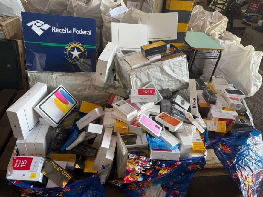 Ao solicitar a abertura da lateral do compartimento do tipo sider, os agentes constataram que, além dos pallets declarados, havia, na parte traseira da carreta, oito volumes contendo mercadorias estrangeiras diversas sem comprovação de regular importação. Entre os produtos apreendidos estavam uma grande quantidade de aparelhos eletrônicos de alto valor, como iPhones, iPads e MacBooks.