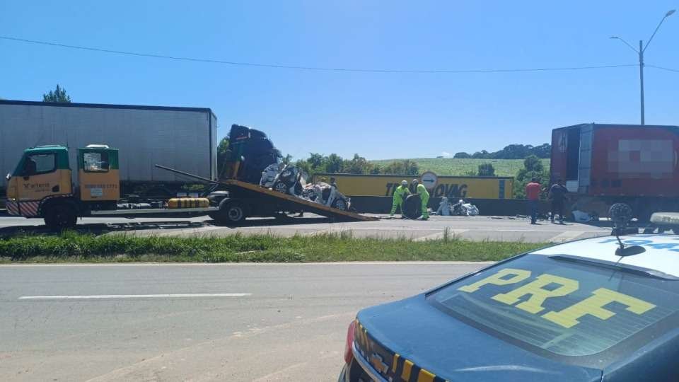 Três pessoas morreram e duas ficaram gravemente feridas após carro ser prensado entre dois caminhões no km 620 da BR-376, em São José dos Pinhais, na Região Metropolitana de Curitiba, na manhã desta quarta-feira (19). O acidente foi registrado por volta das 5h45.