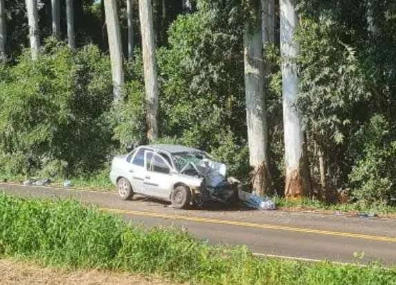 Segundo as informações apuradas, um GM/Corsa com placas de Salgado Filho (PR) seguia pela rodovia quando o motorista perdeu o controle da direção. O veículo saiu da pista e colidiu violentamente contra um eucalipto às margens da estrada.